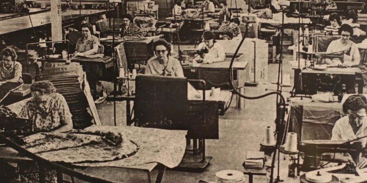 In early company history, the company only had 20 sewing machines, 10 being used for contract work & 10 for open work.